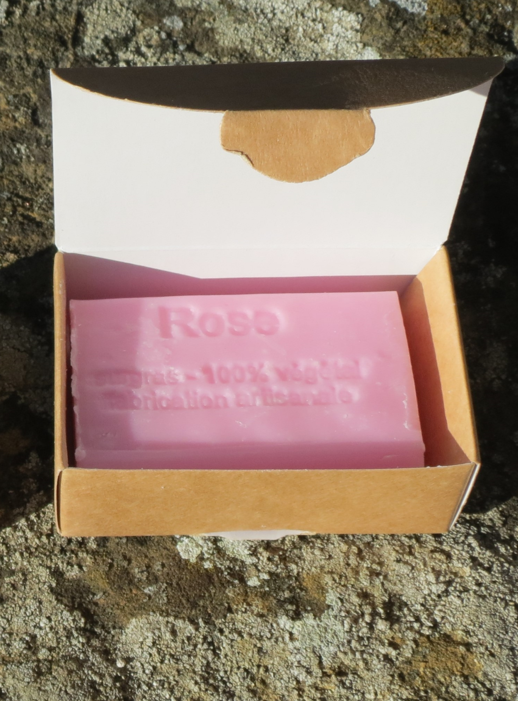 Ingrédients : sodium olivate, sodium cocoate*, sodium stearate, aqua, donkey lac*, parfum, butyrospermum parkii oil*, glycerin, sodium chloride, CI77007, tetrasodium glutamate diacetate, CI 77491, geraniol, citronellol, linalool, eugenol, hydroxycitronellal.