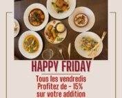 Chers clients, Depuis l'ouverture de notre restaurant, les maîtres mots de la cuisine proposée ont toujours été : la qualité , le fait-maison et les produits locaux de saison . Le menu que nous vous proposions chaque mois, et qui était attendu, s'inspirait de cette qualité et saisonnalité. Nos chefs souhaitent aller encore plus loin et pouvoir vous proposer des produits à saisonnalité ou disponibilité très limité et des coups de cœur . Ainsi le menu ne sera plus figé pour un mois. Les plats se succèderont au rythme des fruits, légumes et produits de saison.. Vous serez bien entendu toujours informés des changements et nouveaux plats que vous retrouverez toujours sur notre site internet. Nous espérons que vous apprécierez d'autant plus les plats proposés dans notre restaurant. Nous proposons une opération Happy Friday, vous bénéficierez de -15 % sur votre note ...