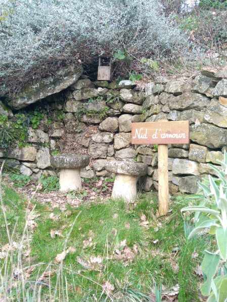 Certains panneaux d’indication dans le jardin commençaient à être abîmés ou manquaient à certains endroits. Afin de garder une harmonie dans le jardin, des panneaux ont été réalisés en bois gravés à la défonceuse. Ils ont été lasurés et peints pour une bonne tenue et visibilité. Les espaces du jardin sont ainsi mieux matérialisés.