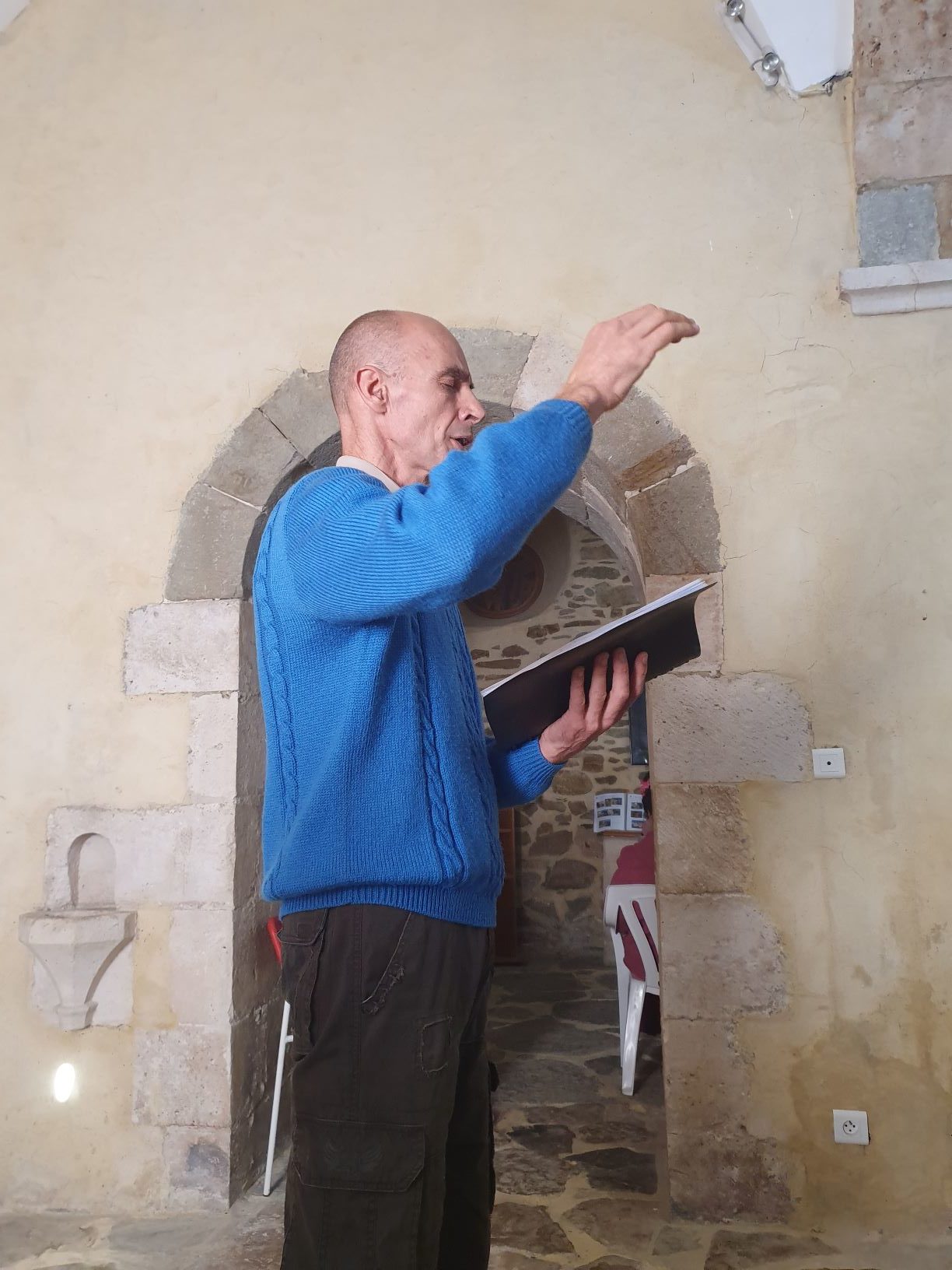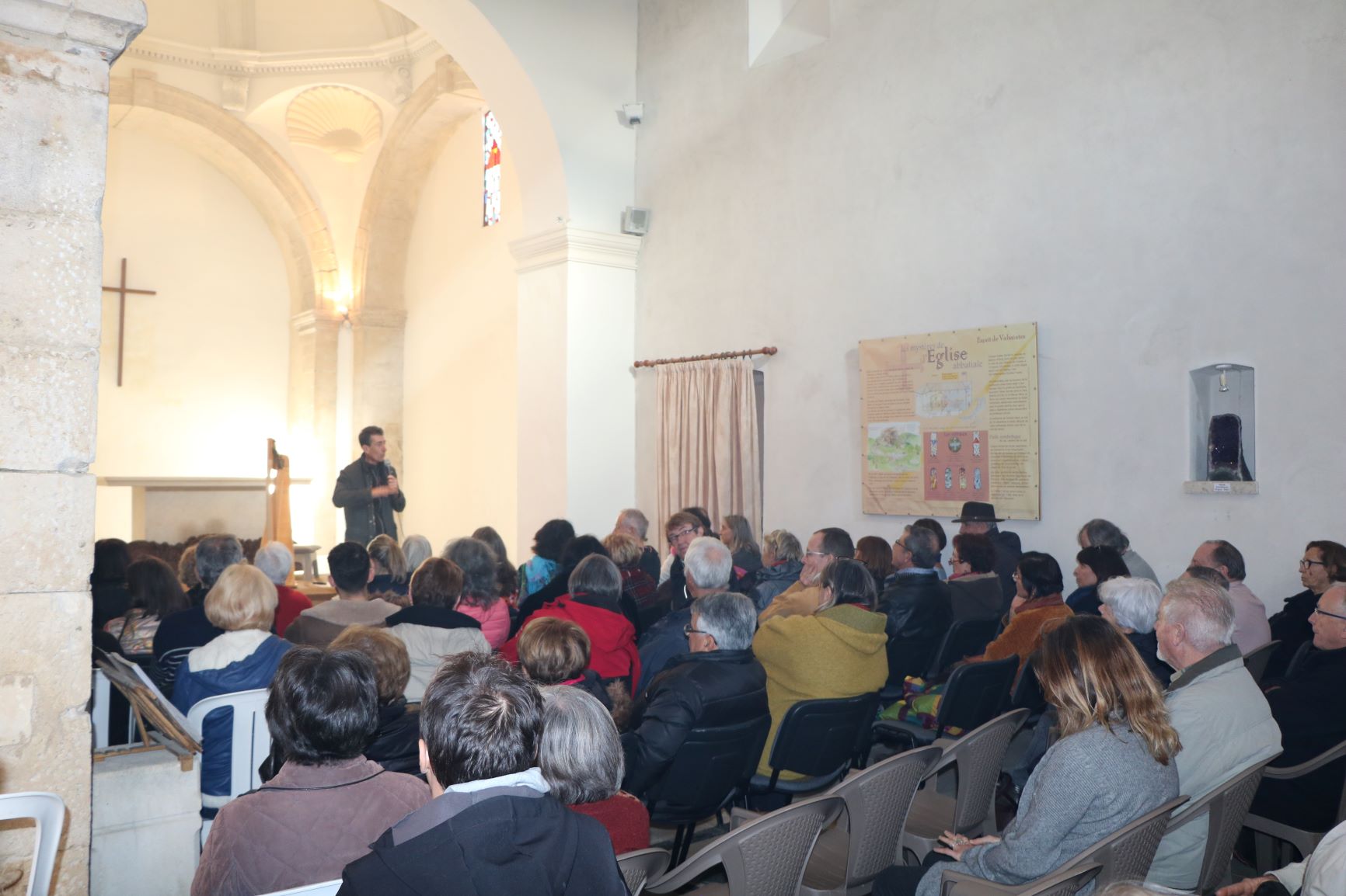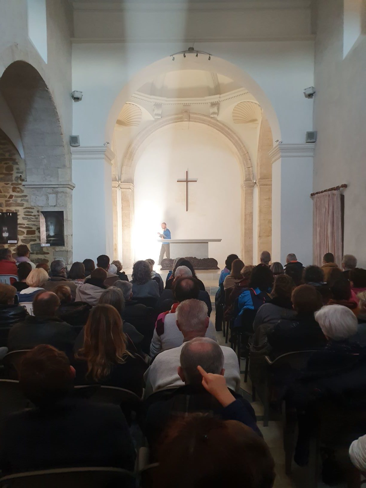 Nous nous sommes ensuite rendu dans l’église . Jean-Yves Meignen a accueilli les visiteurs puis Jean louis Moine a proposé une petite introduction historique et du chant grégorien.