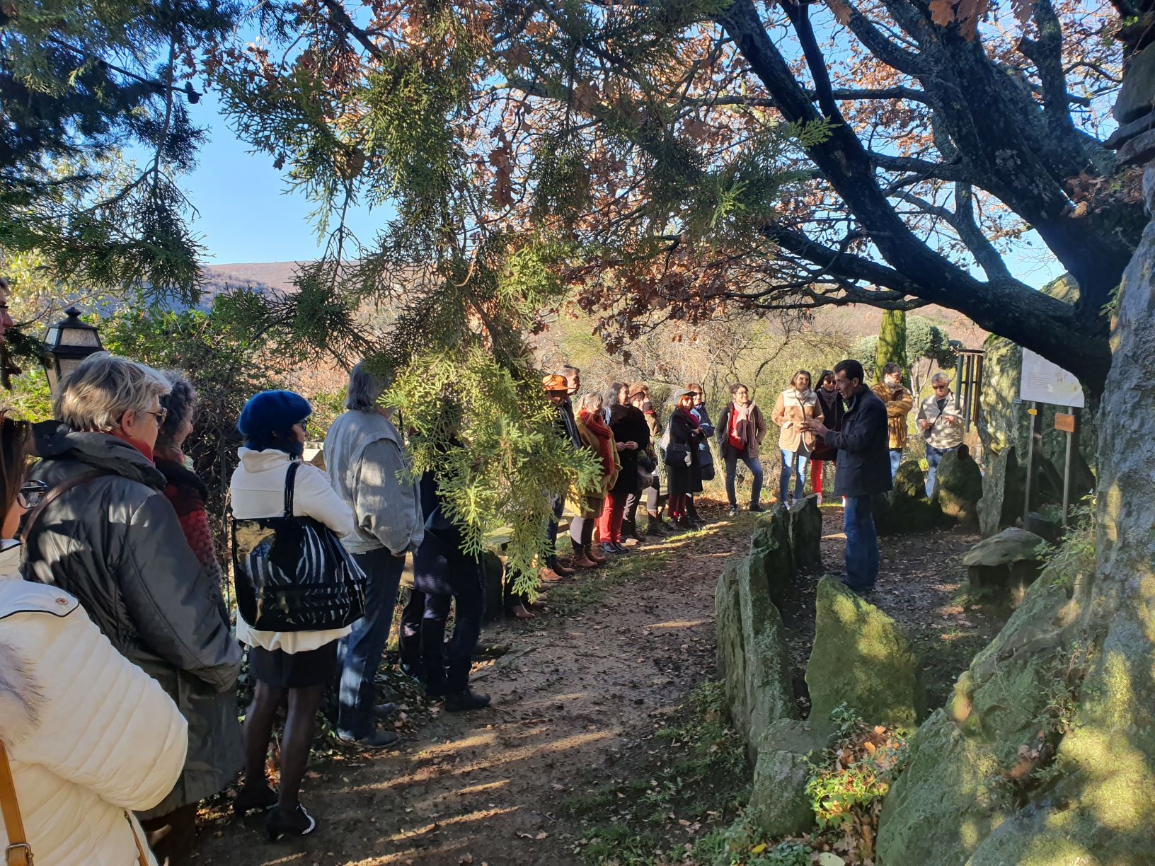 En fin de matinée, Jean-Yves Meignen et Jean-Louis Moine ont guidé les visiteurs dans le jardin pour les mener à la découverte des boulinettes, du calendrier archaïque, du jardin sec …