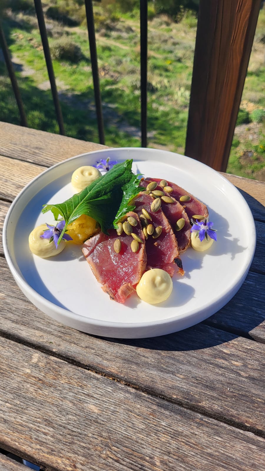 Nous allons revisiter un tataki de thon mariné aux saveurs d Asie, Courge spaghetti avec feuilles de shiso et mayonnaise au gingembre.
